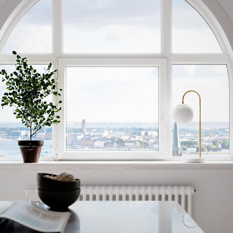 Bellagio är en stilfull bordslampa som kombinerar klassiska material med modern design och en tydlig retrofeeling. Lampans fot är tillverkad i elegant vit marmor, vars naturliga ådring gör varje exemplar unikt. De exklusiva detaljerna i mässing förstärker uttrycket och skapar en harmonisk helhet som passar lika bra i det moderna hemmet som i mer traditionella miljöer.
