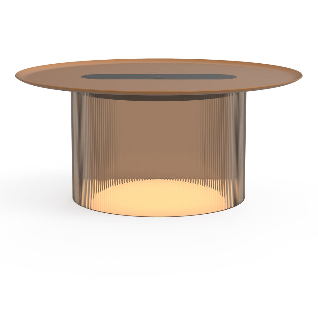 Karusellhistorien, Karusellen suddar ut gränsen mellan atmosfär och funktionalitet genom att kombinera en låg inställning trådlös laddningsbricka för dina mobila enheter med varm, bländfri belysning. Dess låga LED-ljuskälla är diskret dold under sin matchande bricka och hängande ovanpå en transparent fluted akryl cylinder diffusor som strålar fascinerande ljusmönster på bordets yta nedan. Perfekt för skrivbord eller sängbord, Karusellen förkroppsligar ett unikt hybridperspektiv på vad en personlig lampa kan vara. Basdiffusorn erbjuds i både klar och bronston och kan paras ihop med en snurrad stålbricka i matt vit, terrakotta och svarta ytor.